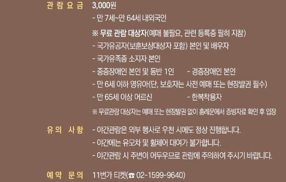 단, 한복 착용자는 무료로 관람 가능합니다.