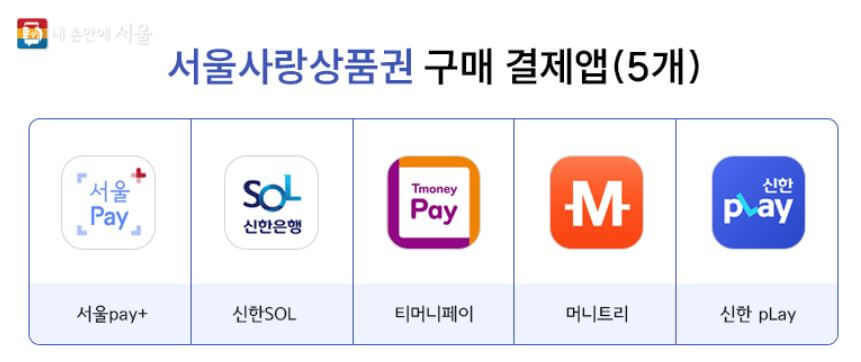 서울사랑 상품권은 서울페이 플러스, 신한 SOL, 머니트리, 티머니페이, 신한플레이에서 구매 가능합니다. 서울사랑상품권은 이처럼 구매 경쟁이 치열한만큼 보다 저렵하게 소비가 가능한데요. 이번 추석에는 서울사랑상품권으로 지인들과 같이 쇼핑해보시는것은 어떨까 합니다.
